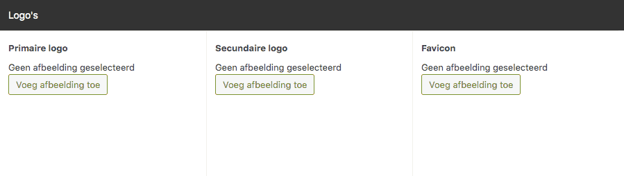 In de sectie “Logo’s” kan je de logo’s van je website instellen/veranderen. Je hebt hier drie optie’s voor je logo: